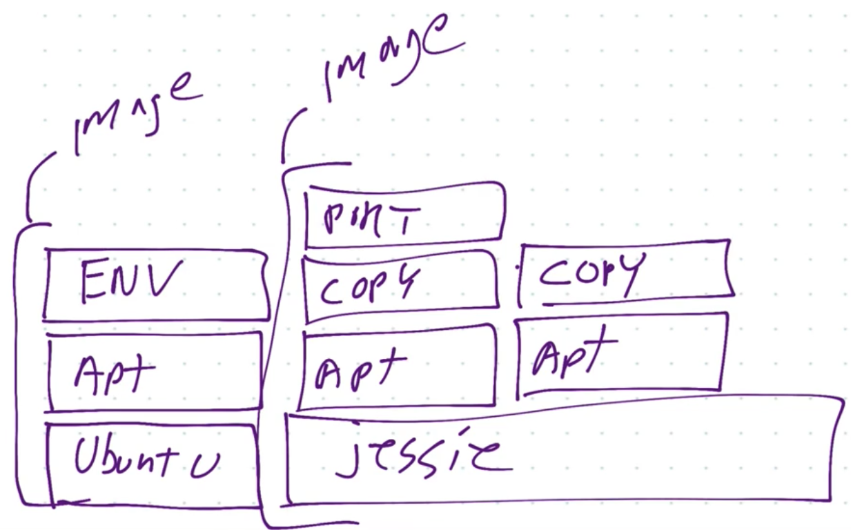 - On the picture above you can see how caching is done: if 2 images are using jessie image layer, it is not going to be dupicated, both images will use the same jessie image (layer)